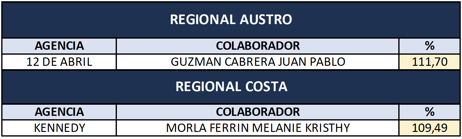 Felicitamos a quienes alcanzaron una productividad mayor al 108% en SEPTIEMBRE.