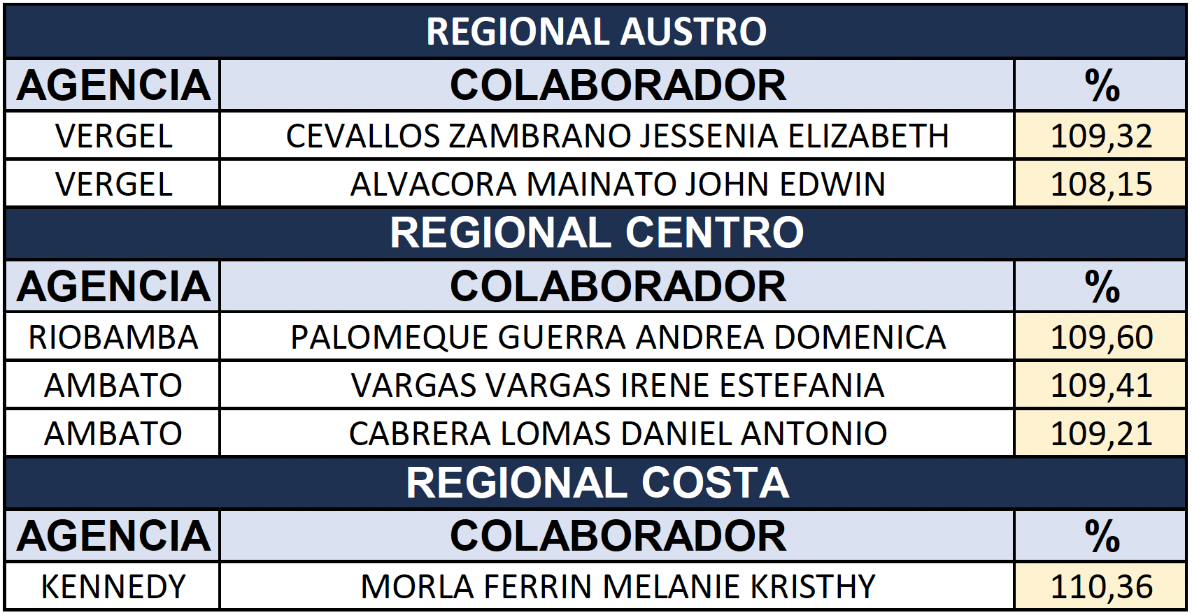 Felicitamos a quienes alcanzaron una productividad mayor al 108% en NOVIEMBRE.