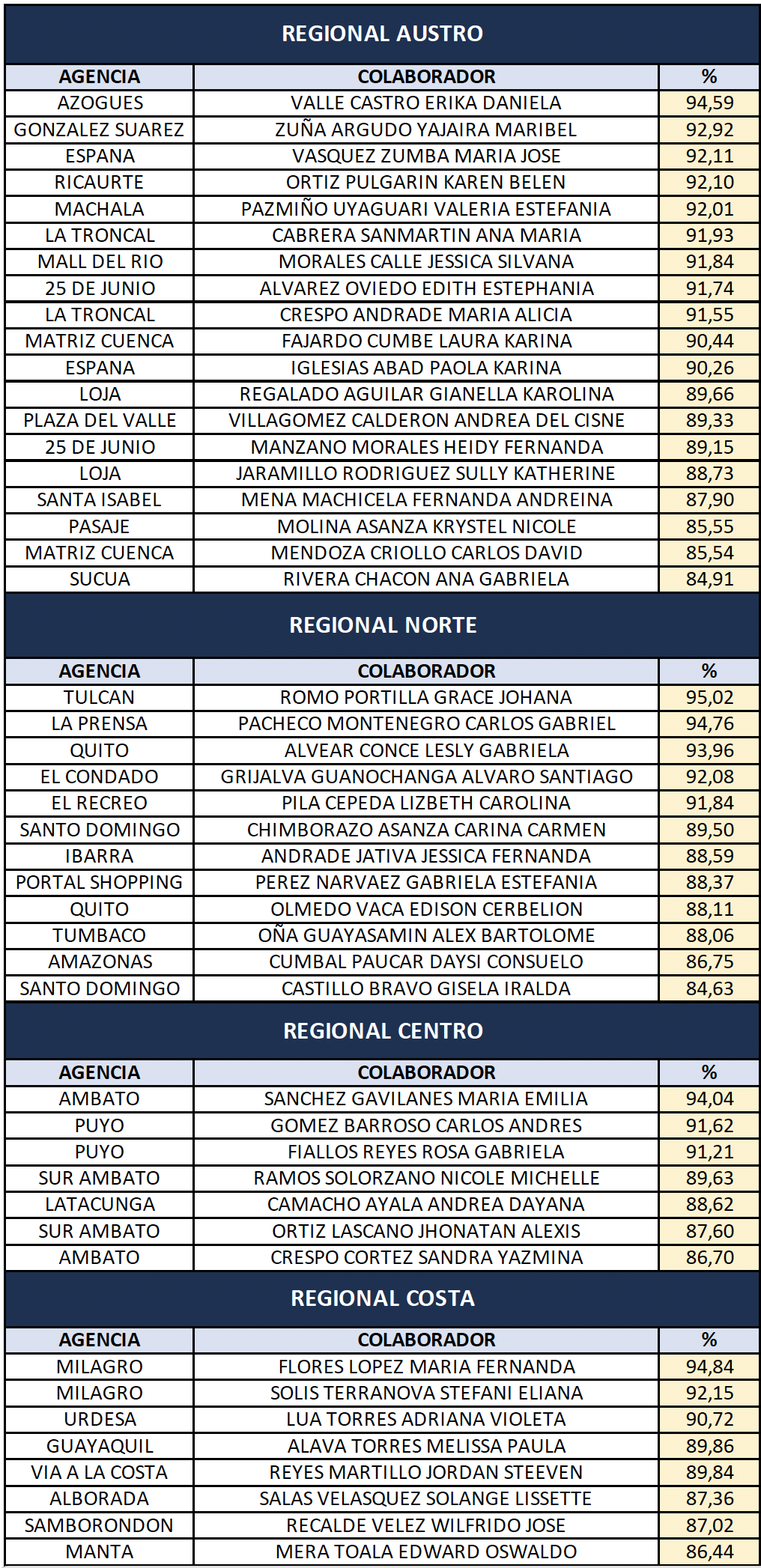 Felicitamos a quienes alcanzaron una productividad mayor 85% en el mes de AGOSTO. ¡Qué excelente resultado!