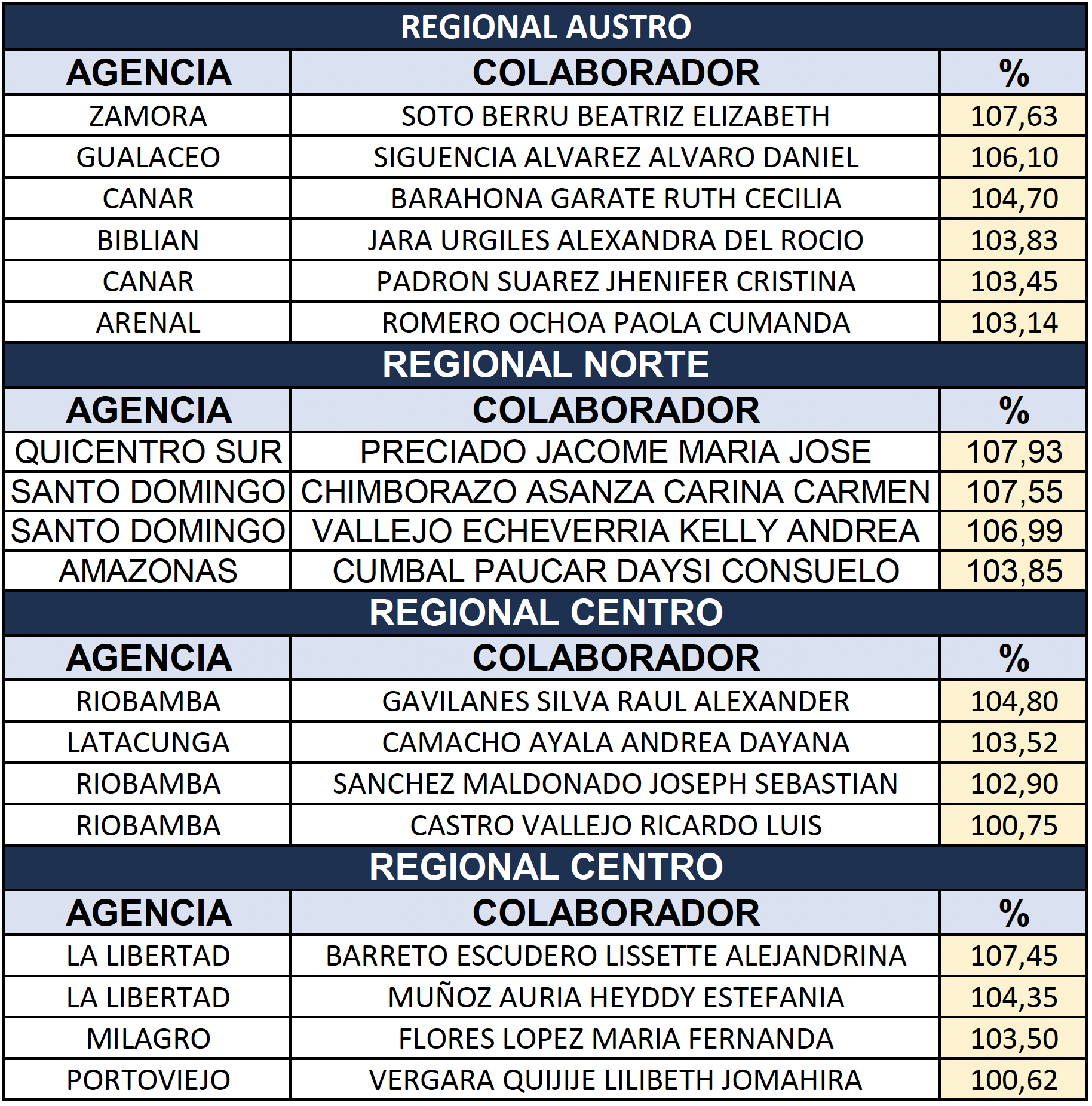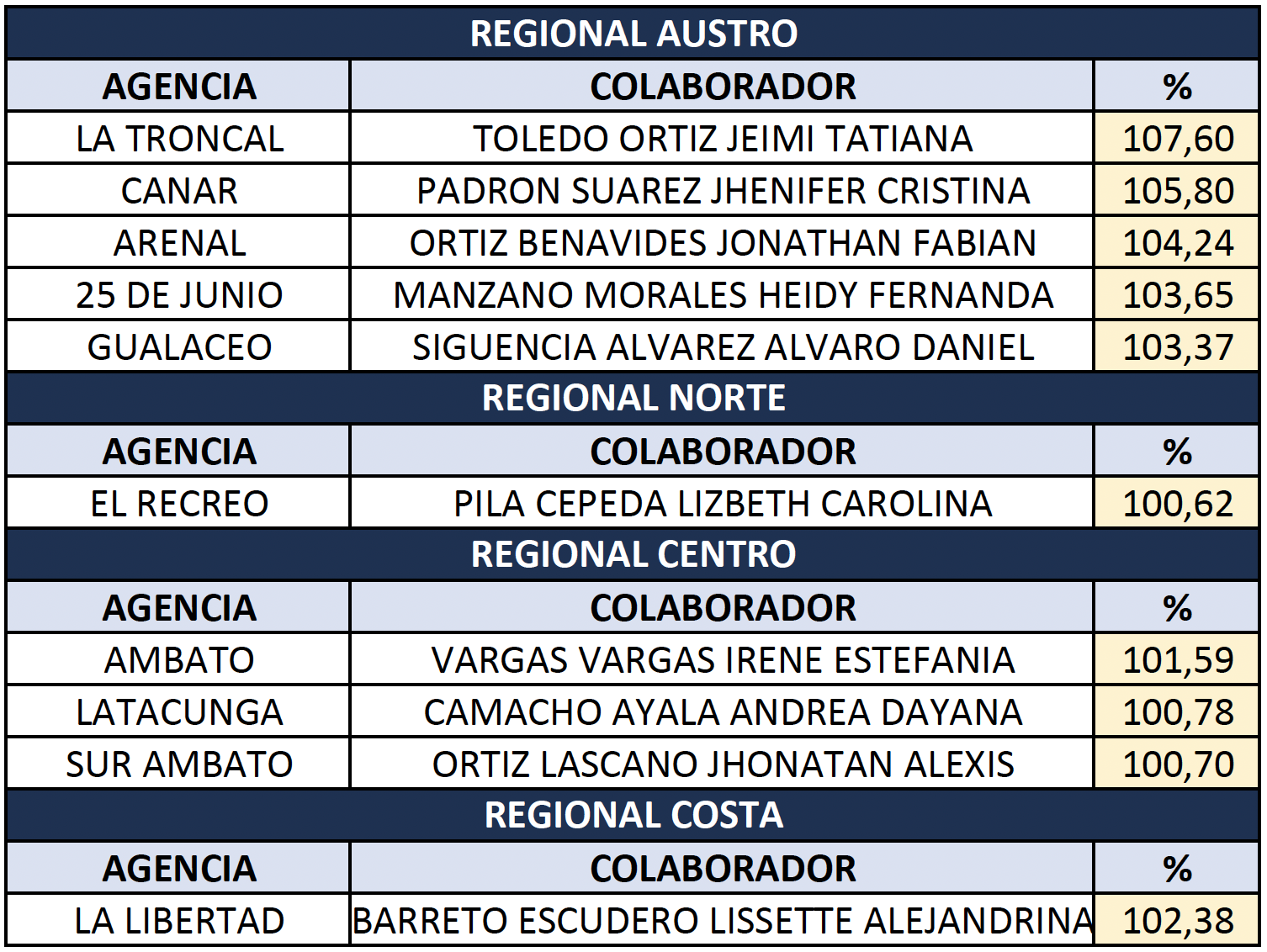 Felicitamos a quienes alcanzaron una productividad mayor 100% en el mes de AGOSTO. ¡Qué excelente resultado!