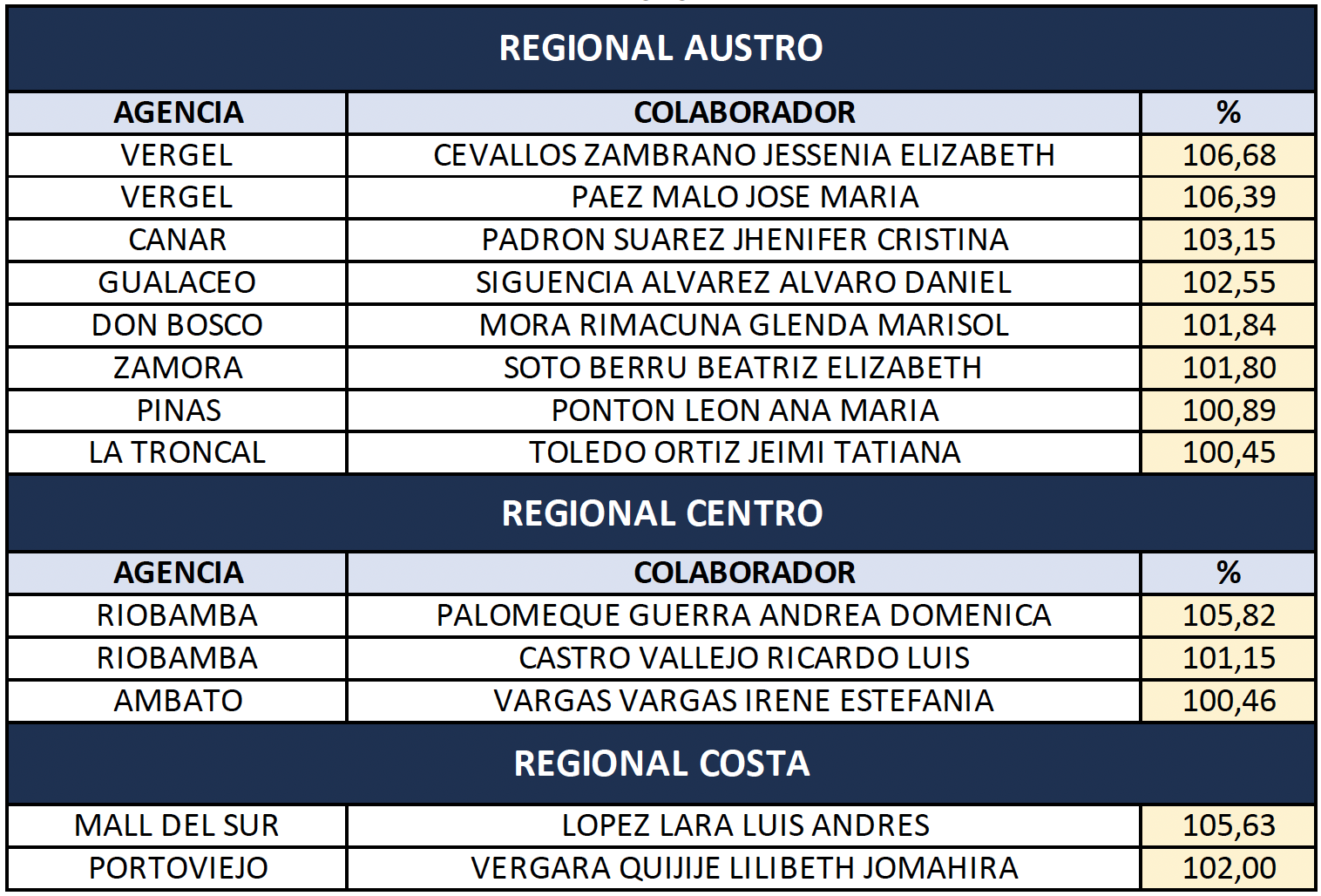 Felicitamos a quienes alcanzaron una productividad mayor 100% en el mes de AGOSTO. ¡Qué excelente resultado!