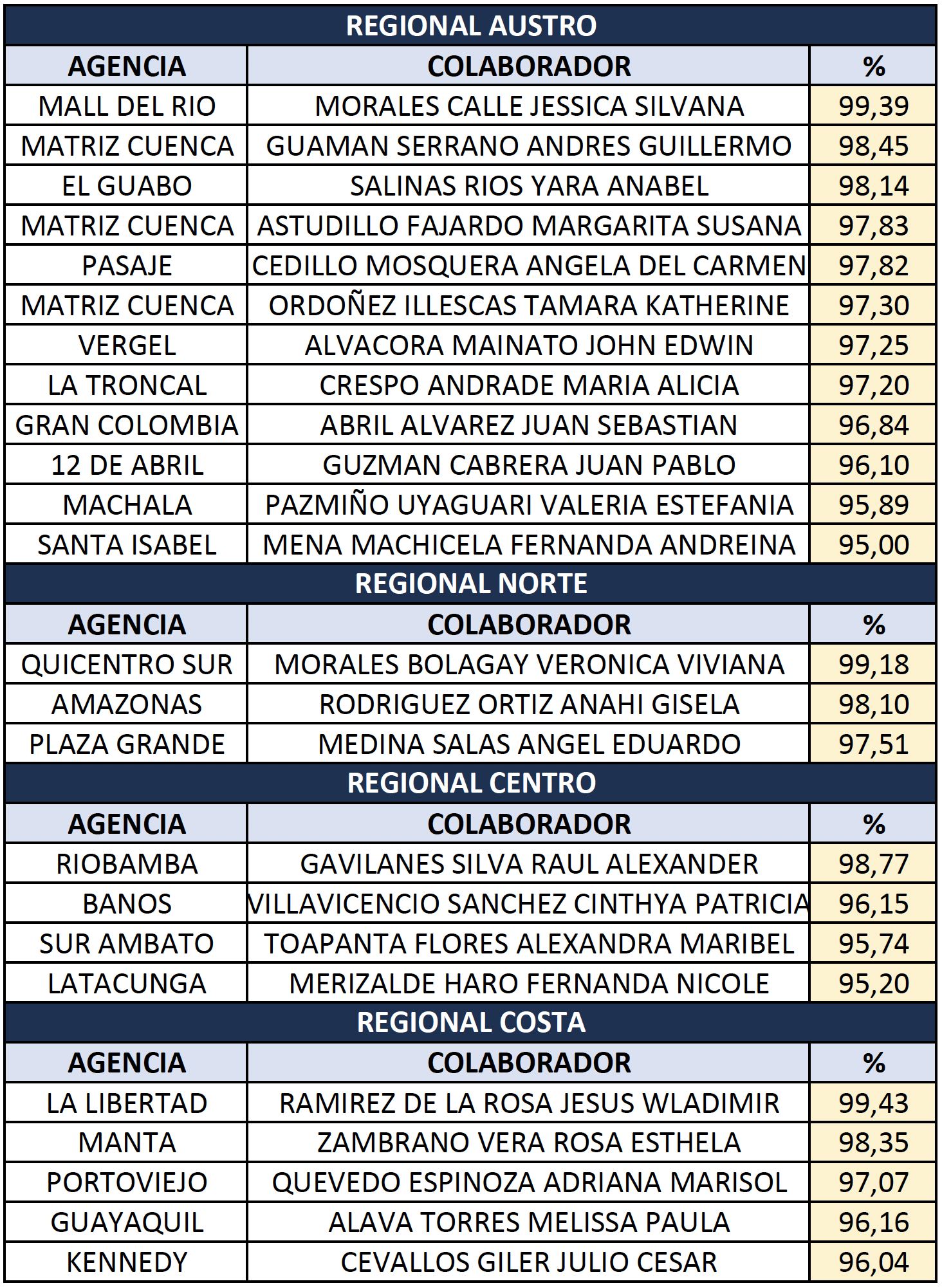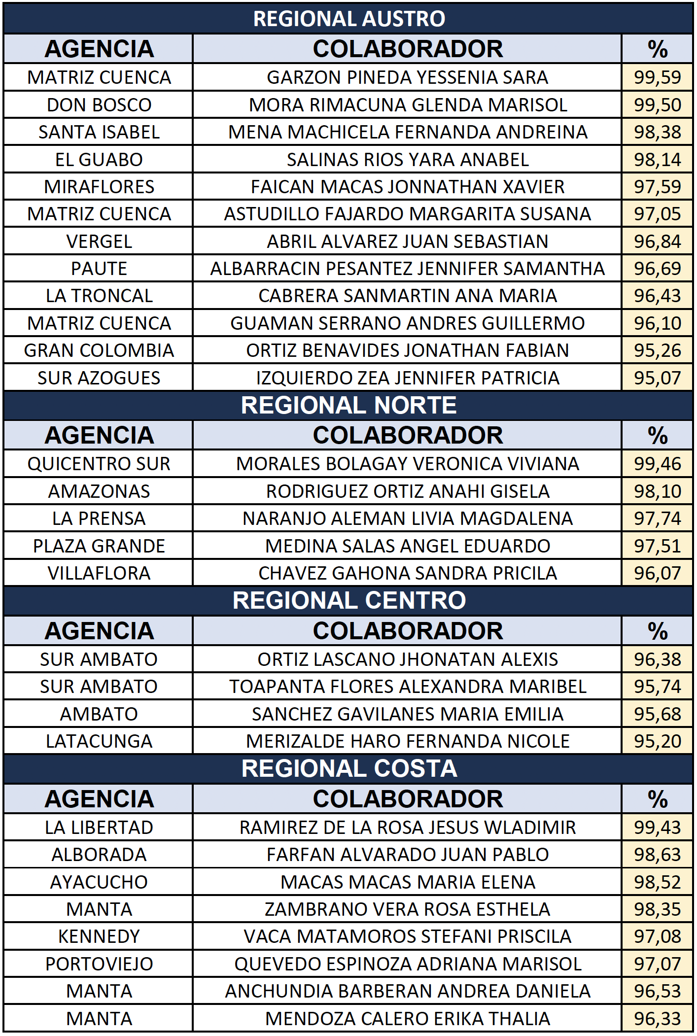 Felicitamos a quienes alcanzaron una productividad mayor 95% en el mes de AGOSTO. ¡Qué excelente resultado!