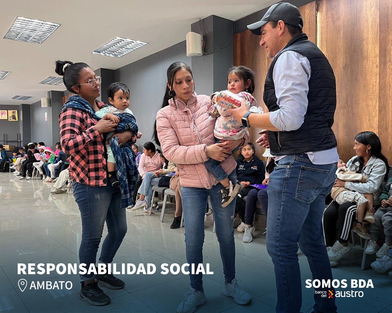 En Ambato, el evento de entrega se realizó en el GAD Parroquial Juan Benigno Vela, donde se entregaron quintales de alimentos como arroz, azúcar, fideos, avena, morocho, aceite, atún y lentejas. Además, se realizó la entrega de juguetes para todos los niños, así como sánduches y yogurt para los adultos y los 100 niños de la parroquia.