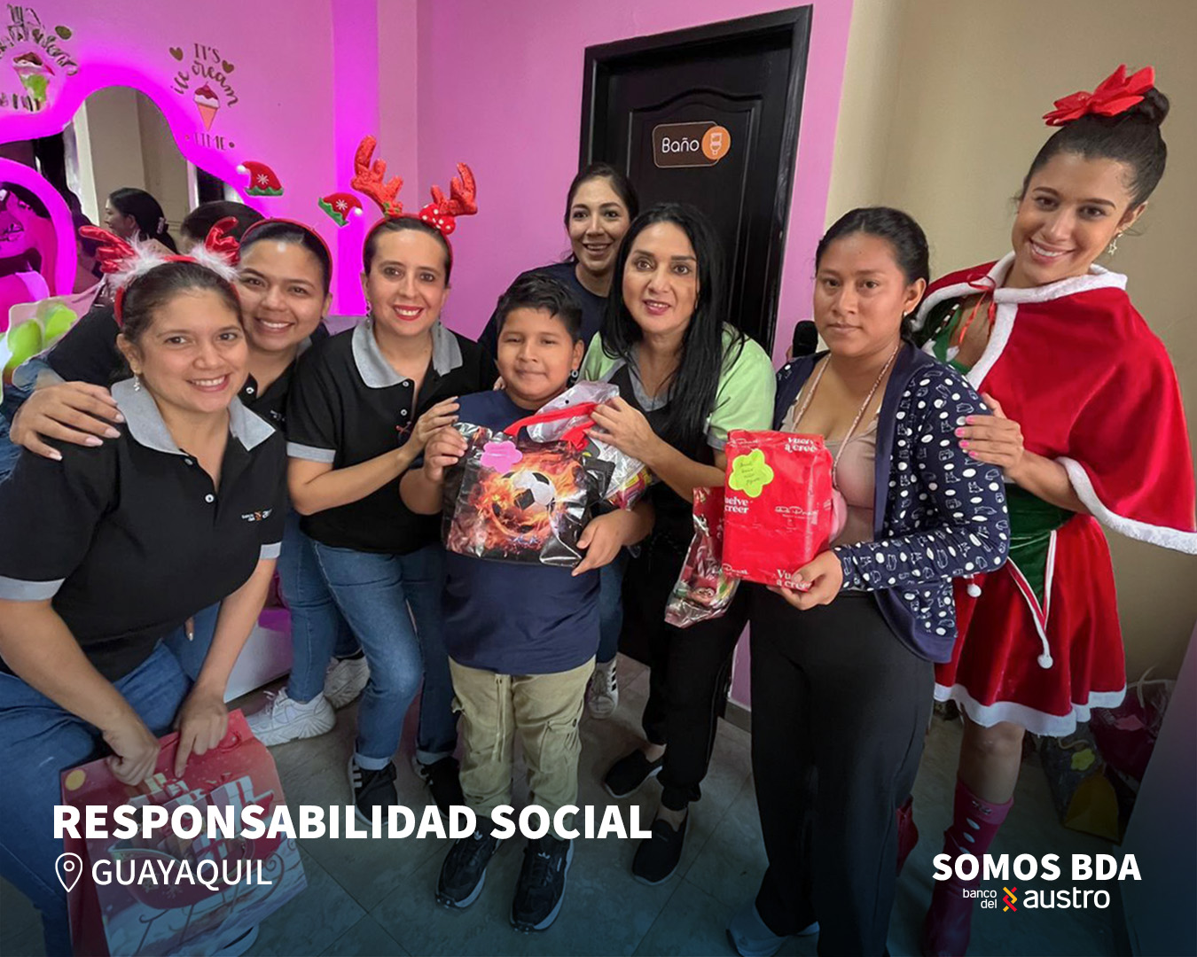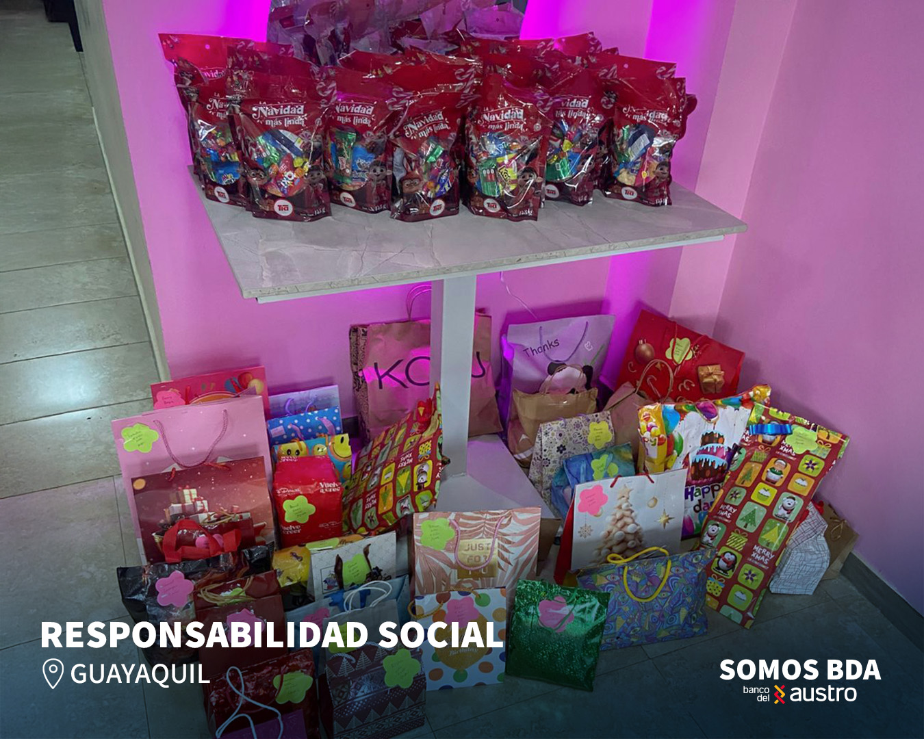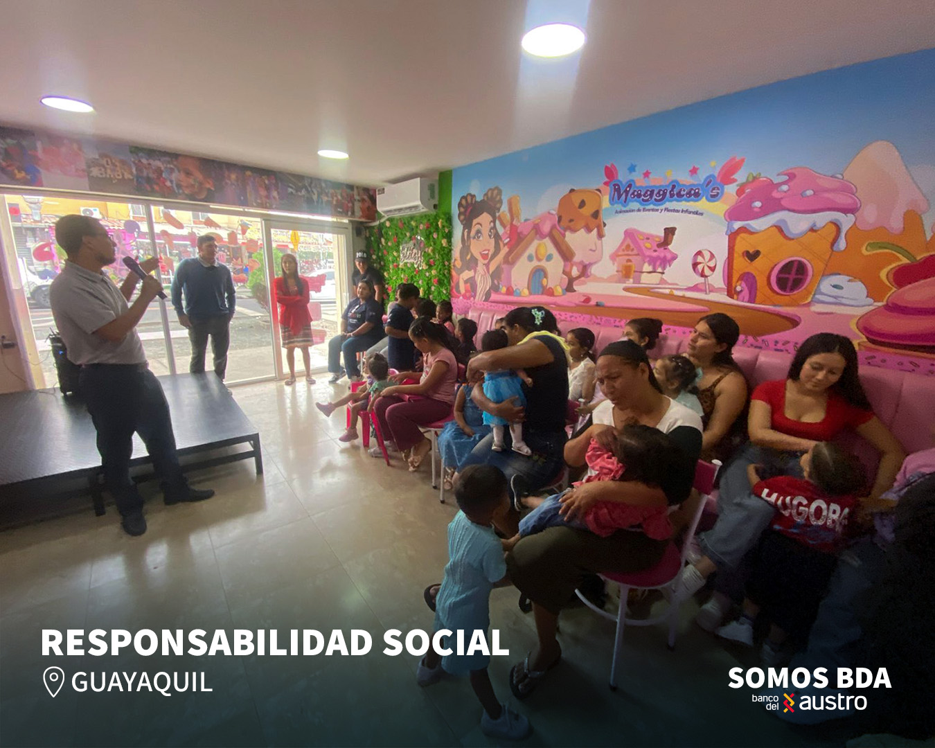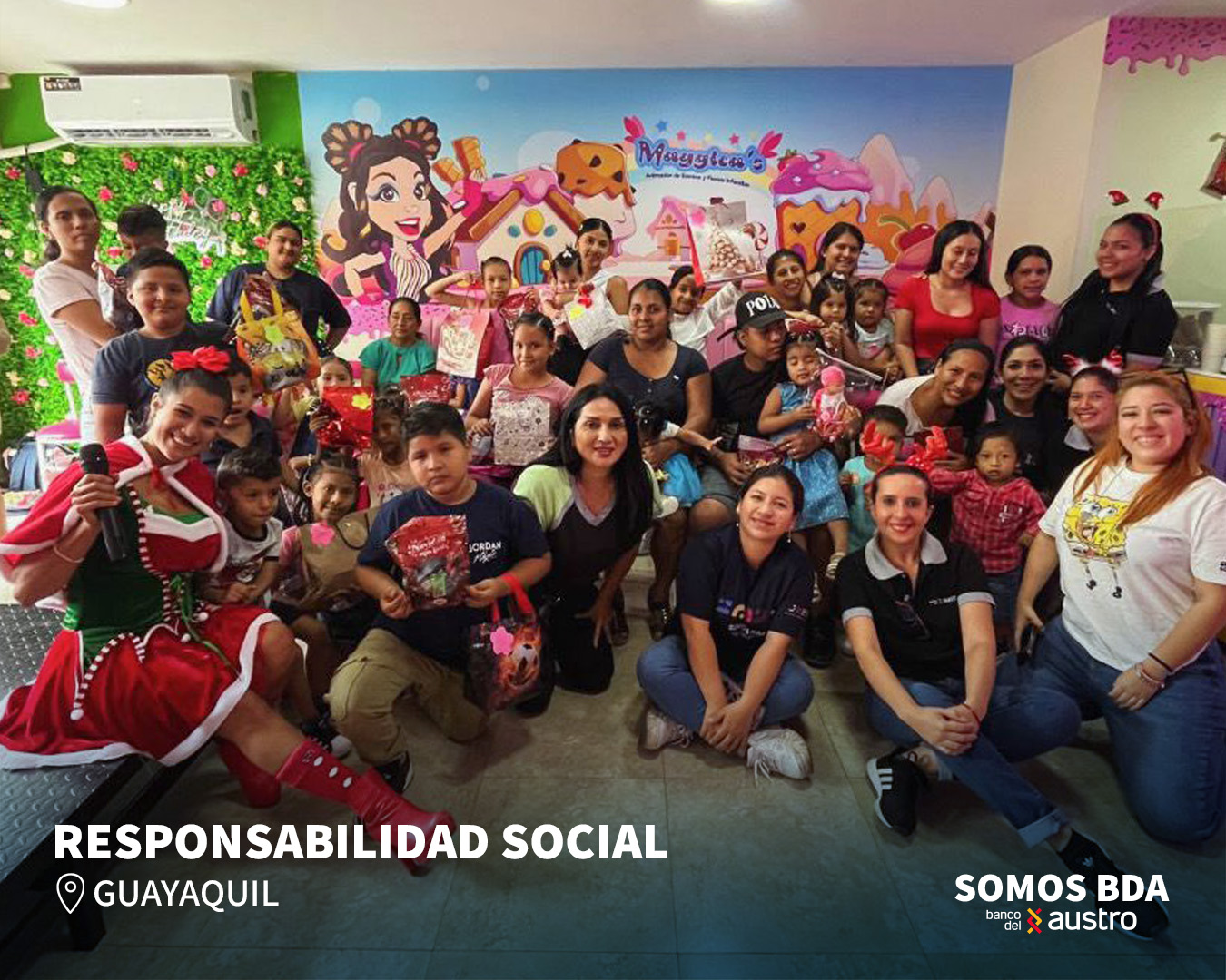 En Guayaquil, el evento de entrega se llevó a cabo en Maggica’s Animaciones y Eventos, donde se entregaron regalos y fundas de caramelos a los niños de la Iglesia Dios Mi Aposento.