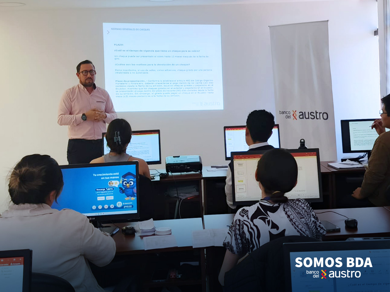 Durante el programa, los participantes accedieron a una formación integral que abarcó temas clave como Servicio al Cliente, Gestión de Reclamos, Procesos de Caja, Ley de Cheques, Grafología y Experiencia del Cliente, entre otros. Las capacitaciones fueron impartidas por colaboradores expertos del Banco, quienes compartieron sus conocimientos y experiencia a lo largo de aproximadamente 80 horas de formación.