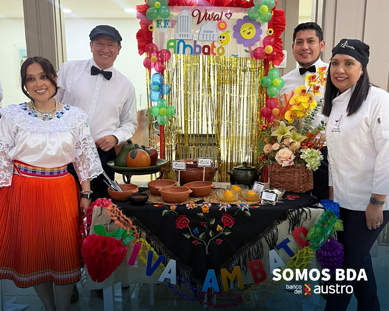 En el marco de la tradicional Fiesta de la Fruta y de las Flores, el pasado viernes 6 de febrero, nuestros colaboradores de la Sucursal Ambato disfrutaron de una jornada llena de sabor, cultura y compañerismo durante el festival de comida típica, organizado por el Banco del Austro.