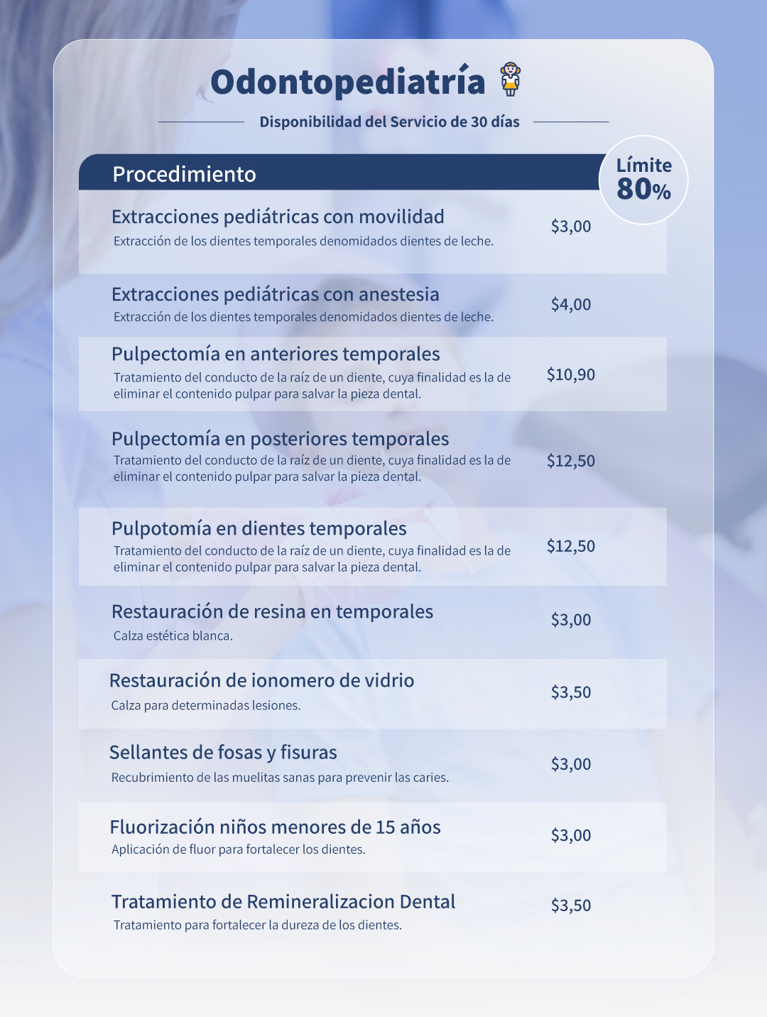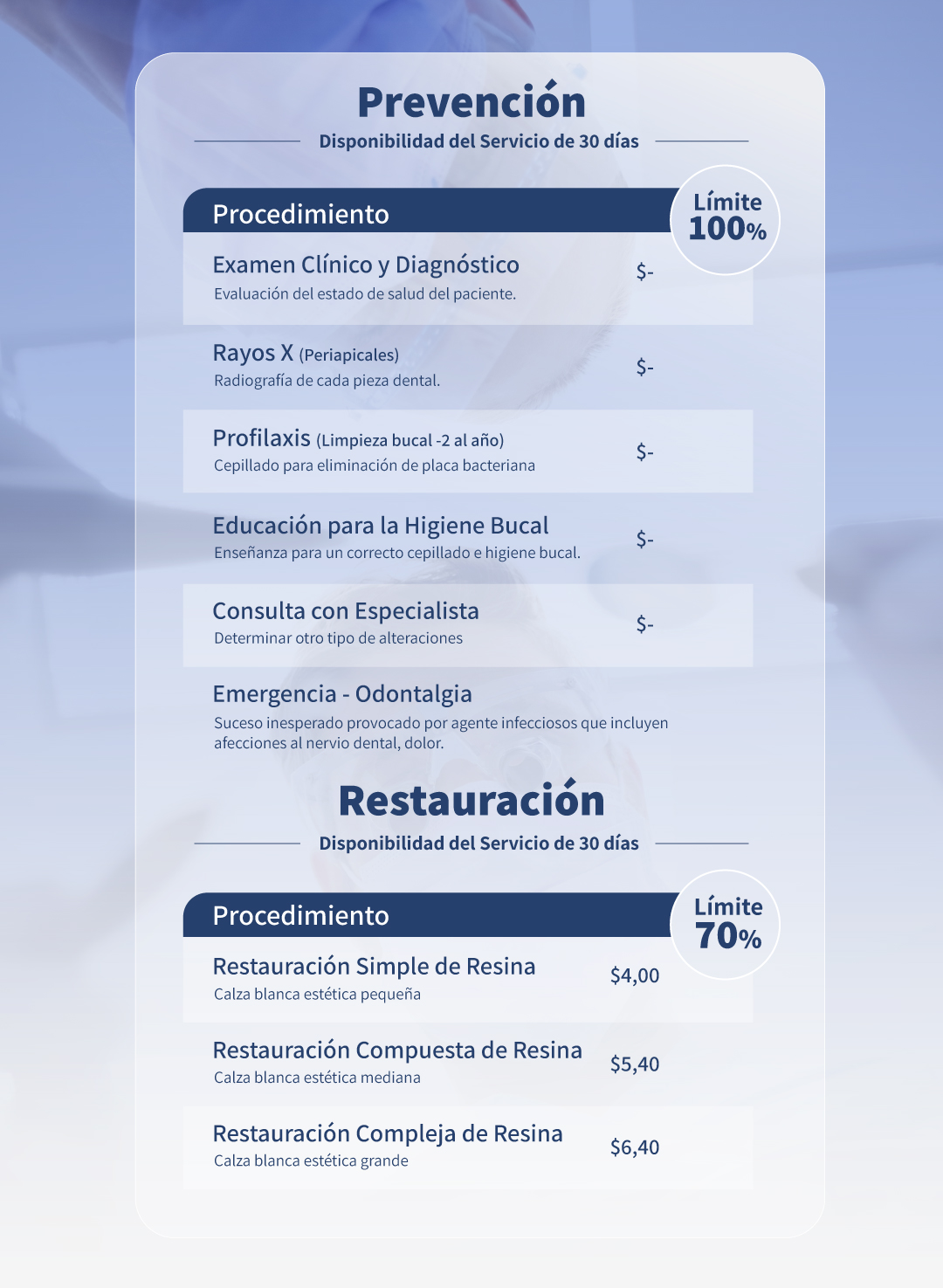 Te invitamos a aprovechar esta nueva asistencia dental que busca brindarles a ustedes y sus familias una cobertura integral en salud bucal con beneficios exclusivos.
